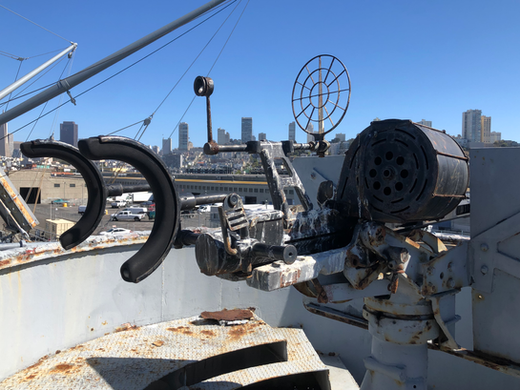 It took several crewmembers to man a single 20mm cannon which included the need to pass ammunition from the ship’s magazine below and swap out the cannon’s empty drum magazines. During WWII, they were manned by the Naval Armed Guard and, when necessary, by trained Merchant Marine crewmembers.